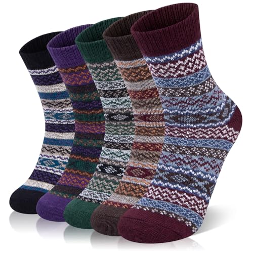 YSense Beau 5 par damer merinoull strumpor vinter tjocka ullstrumpor merinoull termostrumpor ull varm vintage stil vinterstrumpor strumpor damer gåva, Lila + svart + grön + brun + vinröd, 36-42