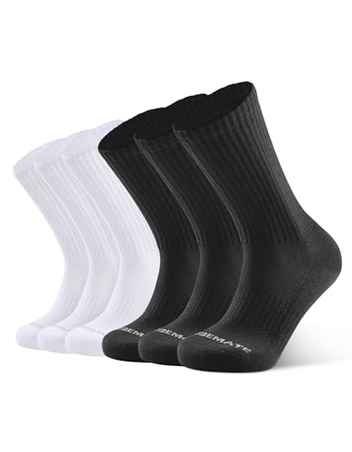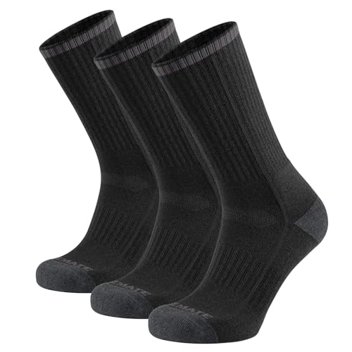 CLOSEMATE Herrstrumpor crew sportstrumpor för män dämpad bomull absorberande andningsbara halkfria vinter atletiska strumpor för prestanda träning vandring promenader arbetsstrumpor 6 par, 3 svart 3
