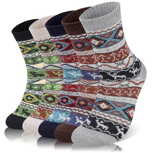 YSense Beau 5 par damer merinoull strumpor vinter tjocka ullstrumpor merinoull termostrumpor ull varm vintage stil vinterstrumpor strumpor damer gåva, Röd, lila, rosa, grön, beige, 36-42