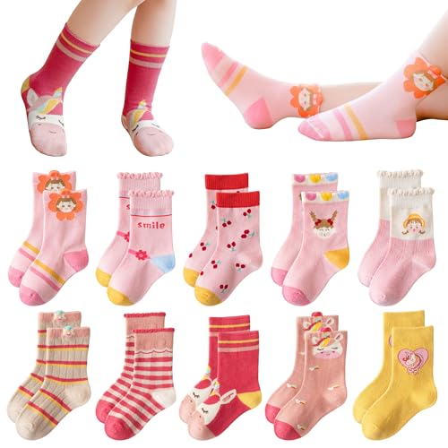 Baogaier 10 par strumpor pojkar flickor bomull rolig randig strumpa djurtryck, andas bekväma sportstrumpor vinter termiska strumpor, 2–12 år, 21–37, Rosa, 29-32