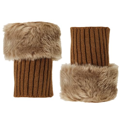 Fluffiga Benvärmare, 18cm Korta Lurviga Benvärmare Stövelmanschetter i Fuskpäls Stickade Stövelskydd Strumpor Vinter Plysch Benvärmare för Kvinnor Flickor Fest Kostymer (Kaki)