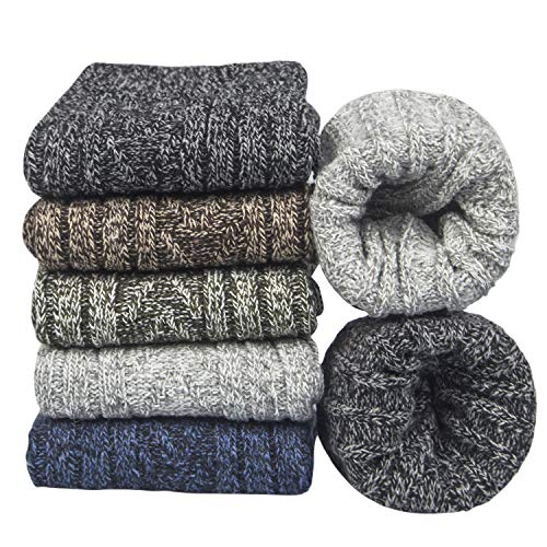 Justay ullstrumpor för män, varma tjocka termiska strumpor, vinter herrstrumpor, stickade strumpor, bomullsstrumpor, slitage/mysiga ventilerande 6/5 par, julklappar för män, D1