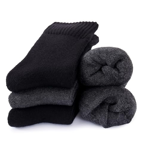 Closemate 3 par Merino ullstrumpor män vinter varma strumpor män tjocka termostrumpor andas frottéstrumpor vandringsstrumpor för utomhus vandring löpning skidstrumpor svart grå brun, svart, 39-42 EU