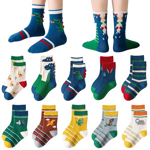 Baogaier 10 par strumpor pojkar flickor bomull rolig randig strumpa djurtryck, andas bekväma sportstrumpor vinter termiska strumpor, 2–12 år, 21–37, Blå, 33-37