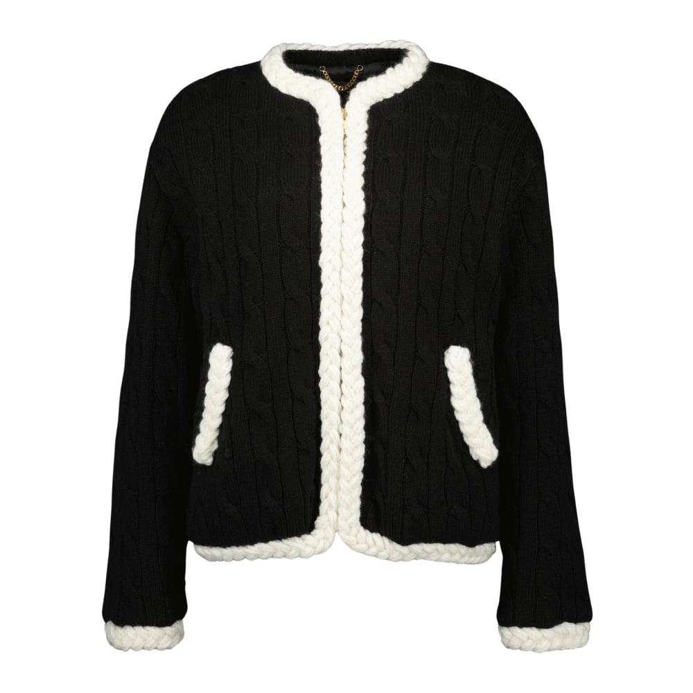 Patou, Stickade Tröjor , Dam, L, Svart ullkofta Höst-Vinter 2025