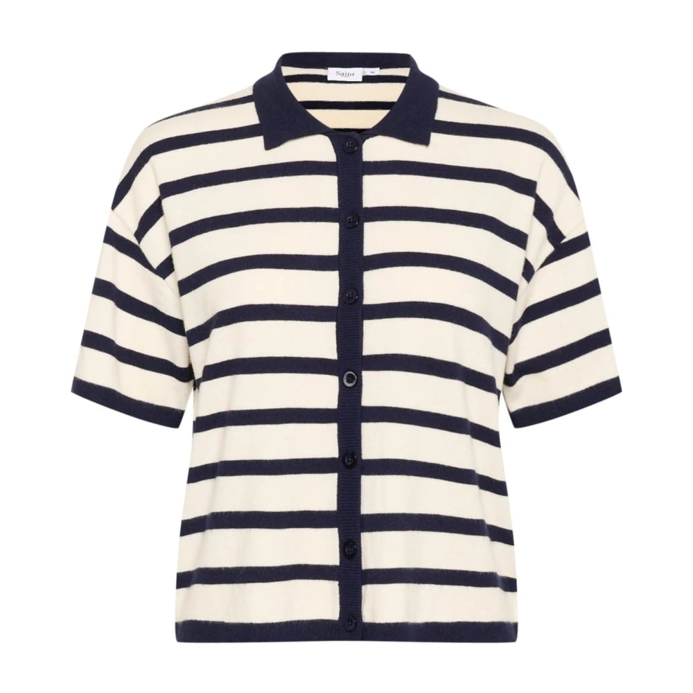 Saint Tropez, Stickade Tröjor , Dam, S, Polyester, Randig Polo Cardigan Vinter Nightsky