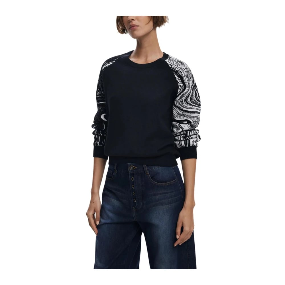Desigual, Stickade Tröjor , Dam, L, Polyester, Svart Stickat för Höst/Vinter Säsongen