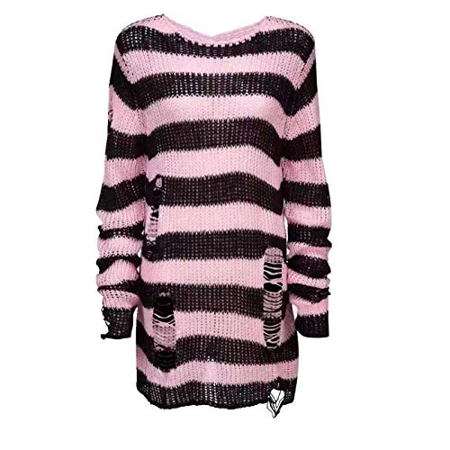 U/A Halloween gotisk stickad tröja för kvinnor, långa pullovers, randiga lösa tröjor för vinter, rippade tröjor i plusstorlek