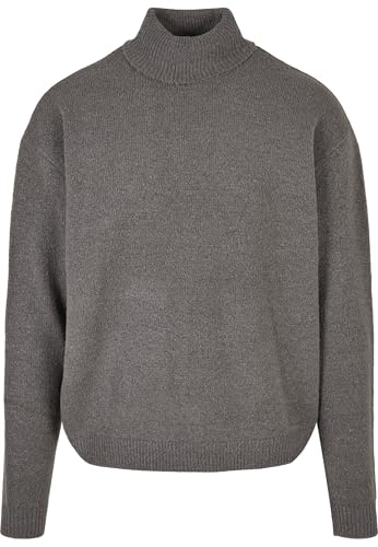 Urban Classics Herr oversized Roll tröja stickad tröja extra stor polotröja med mock hals, enkel tröja för höst och vinter, storlek S till 5XL, asfalt, 5XL