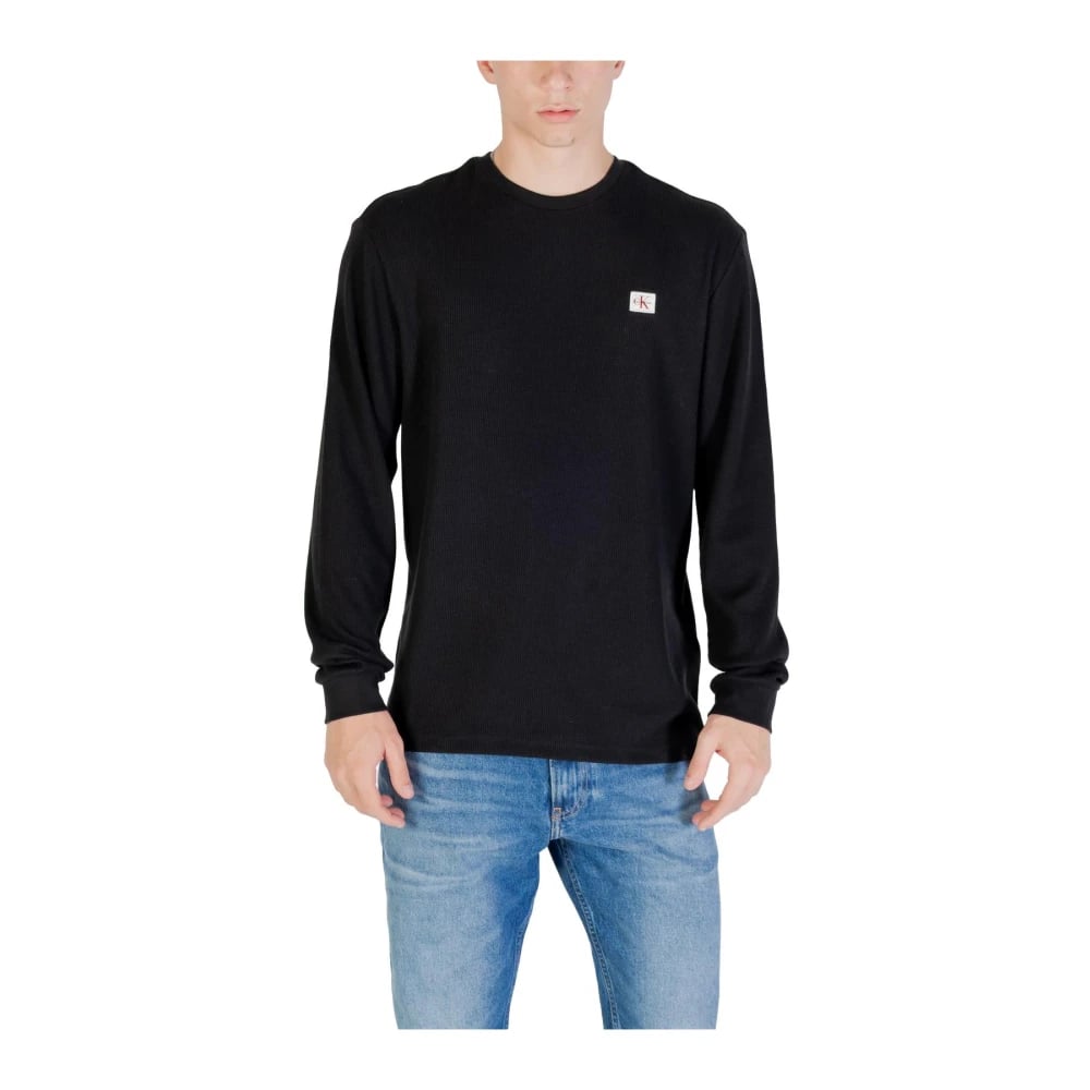 Calvin Klein Jeans, Stickade Tröjor , Herr, L, Bomull, Svart Stickat Plagg för Höst/Vinter Säsongen