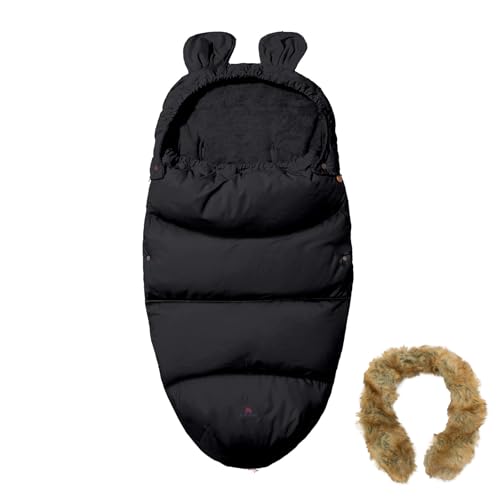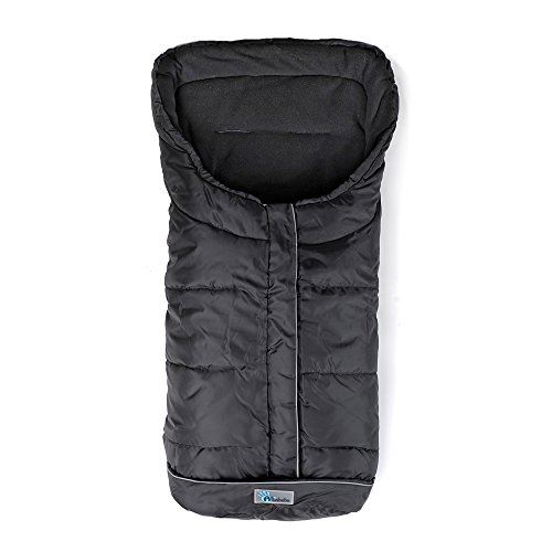 BAMBINIWELT Vinteråkpåse babyåkpåse med dragkedja, gosig påse, åkpåse för barnvagn, buggy, tvättbar, universell 108 cm (svart fodrad)