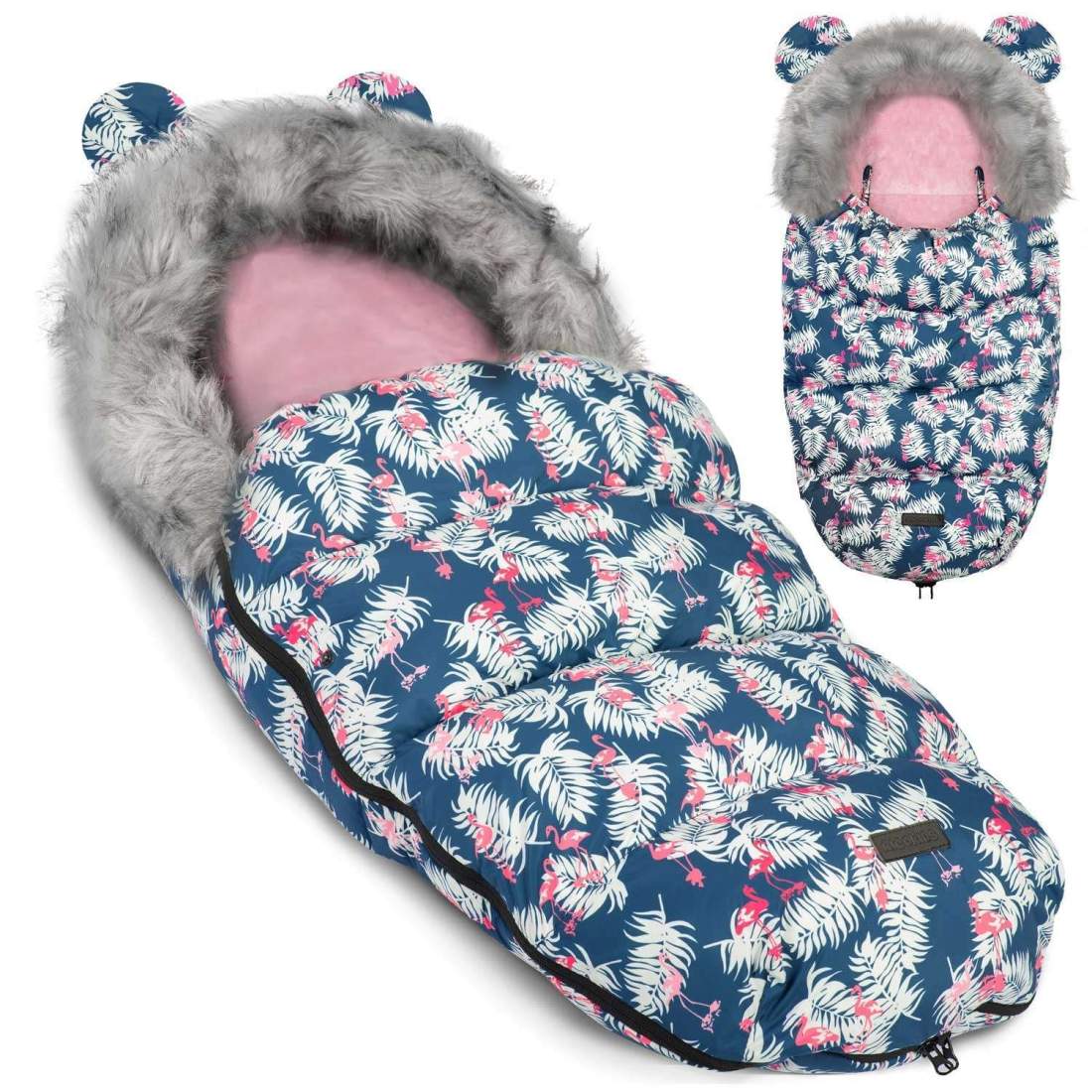 Vinteråkpåse för barnvagn och pulka Elmi Ricokids - blå med flamingomönster
