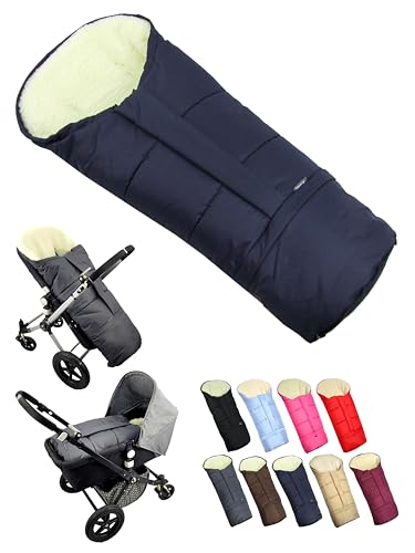 BAMBINIWELT vinteråkpåse för barnvagnar, buggy eller släde, i muminform, gjord av ull, justerbar storlek, MUMIE UNI (marinblå)