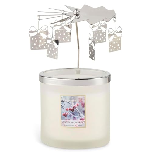 HEART & HOME - Sojavax doftljus för hemmet - Ellips 2 vekar vinterbär och karusell presentförpackning - 40 timmars bränning - julklapp, dekoration och parfym för hemmet