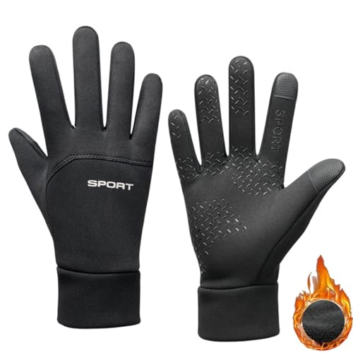 Lzfitpot Handskar herr, vinterhandskar, dam handskar, pekskärm varma cykelhandskar, skidhandskar, vattentäta, vindtäta och halkfria., svart, S