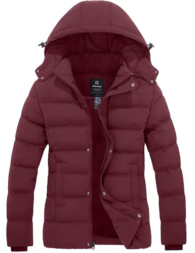 Wantdo Dam vinterjacka kort varm kappa tjock quiltad jacka vindtät vinter buffertjacka med avtagbar huva stoppad kappa, Winerot, XL