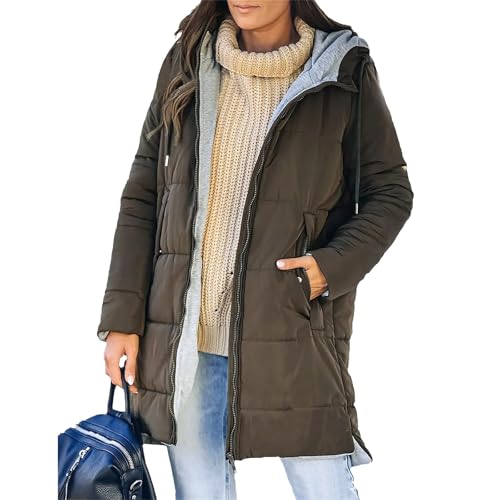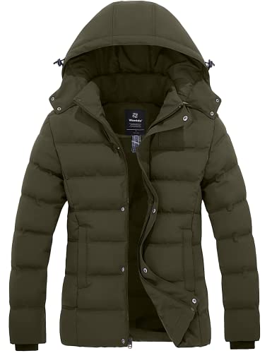 Wantdo Dam vinterjacka kort varm kappa tjock quiltad jacka vindtät vinter buffertjacka med avtagbar huva stoppad kappa, Armégrön, XL