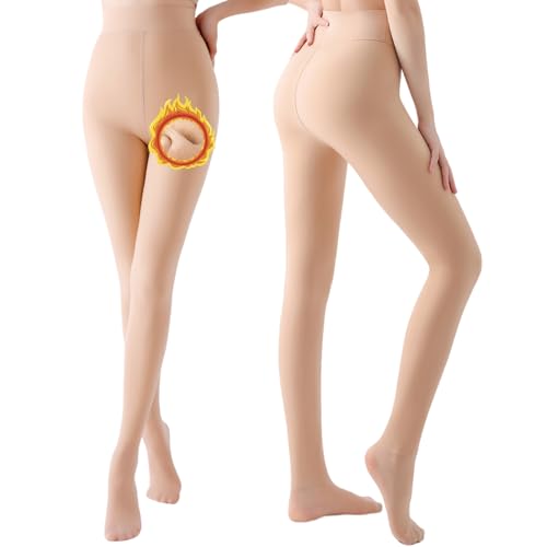 Vertvie Damtermostrumpbyxor, genomskinliga vinterleggings med innerfleece, hög midja, fodrade plyschstrumpor, genomskinliga, varmhållande tights, stretch, tjocka benvärmare, strumpbyxor, 200g für