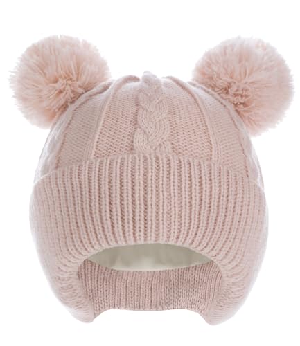Creekstone Babybeanie-mössor, småbarn, tofsmössa, varm, mjuk, fodrad med fleece, vintermössa för baby, flicka, pojkar, ROSA, 2-6 år