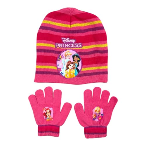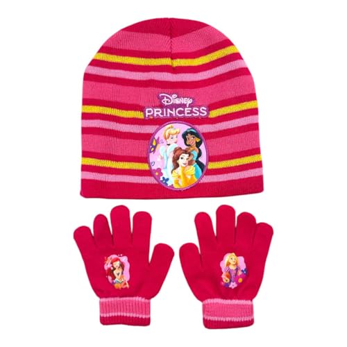 Disney Handskar mössa för flickor, prinsessa, vinterset, prinsessdesign, komfort och värme för barn, fuschia, Taille unique