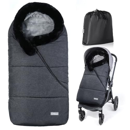 Orzbow Universell barnvagnsdräkt, vattentät baby vintersovsäck för barnvagn, med varm pälshalsband och blixtlås, vattentät babysängfilt (mörkgrå)