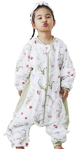 Chilsuessy Baby vintersovsäck 2,5 tog babysovsäck med fötter vintersovsäck med avtagbara ärmar barn sovsäck med ben, kanin trädgård/3,5 tog, XXL/baby höjd 115–125 cm