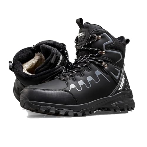 TLOLA Vinterskor herr vattentäta varma fodrade snöstövlar halkfria vinterstövlar män vandringsskor vandringsskor arbete skidor fiske utomhusskor, svart, 43 EU