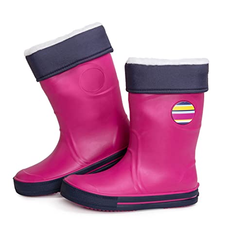 Regnstövlar för barn | Wellies med Avtagbart Varmt Foder | Wellington Stövlar för barn | Vinterstövlar | Reflekterande Detaljer av 3M™ Scotchlite™ | Tillverkade i Italien (28-29 EU Fuchsia/Blå)