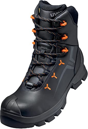 Uvex 2 säkerhetsskor S3 CI HI HRO SRC, vinterstövlar, arbetsskor för kvinnor och män, svart/orange, storlek 43