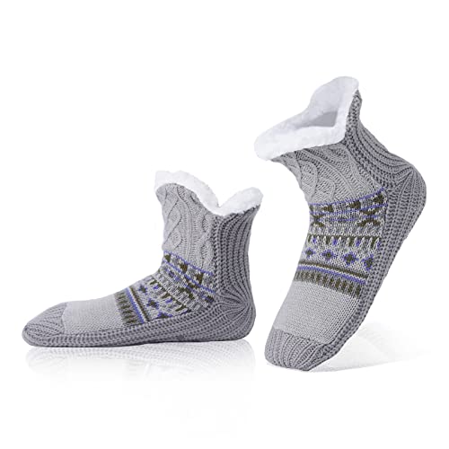WOTENCE Män toffelstrumpor stickade varma och fluffiga fleecefodrade halkfria strumpor vinterstrumpor hem sovstrumpor för sängstrumpor, Grå, en storlek