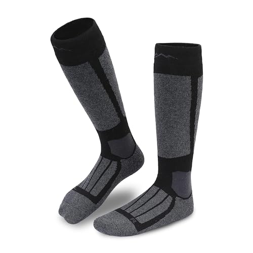 Gipfelsport Varma Merino Skidstrumpor för Män, Kvinnor och Barn - Termiska Vinterstrumpor Med Stoppning I Knästrumpor för Snowboarding, Antracit (1 x Par), 42-44