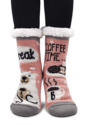 PUTUO damstoppstrumpor tjocka husstrumpor med halkskyddssula, dam ABS-strumpor hutstrumpor varma vinterstrumpor fluffiga termostrumpor med innerfrotté