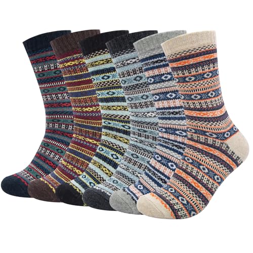 Justay Ullstrumpor, 5 par, vinterstrumpor, merinostrumpor termostrumpor, stickade, tjocka damstrumpor, andningsbara, (storlek: 36–42, gul, orange, grå, grön, brun), Style4, 36-42 EU