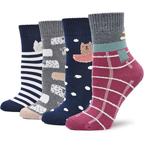 TEENLOVEME Termos dam strumpor med innerfrotté, ledig varm mjuk färgglad crew vinterstrumpor för kvinnor och flickor, 4 par