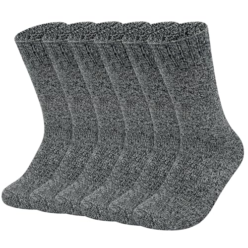 Piarini 6 par norska strumpor robust ull herr – arbetsstrumpor med frottésula – varma vinterstrumpor av fårull, GRÅ, 47-50 EU