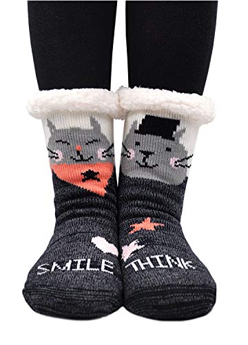 Chalier Cozy Vinterstrumpor i merinoull, damullstrumpor med söt katt, djurmönster, varma, tjocka, färgglada stickade strumpor, termostrumpor, gosiga strumpor dam, storlek 36–42, 36-42 EU