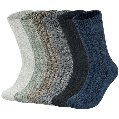 Justay 6 par herrstrumpor, ullstrumpor, tjocka stickade strumpor, vinterstrumpor, termiska strumpor, mysiga, andningsbara, vandringsstrumpor, bomullsstrumpor, julklappar för män, 1 svart mörkblå ljusgrön mörkgrön brun grå