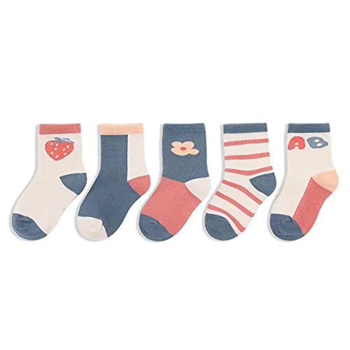 Webuyii Barnstrumpor 5-pack varma vinterstrumpor för småbarn pojkar flickor mjuka tjocka barnstrumpor för 3-12 år barn, Jordgubbe, 3-5 år