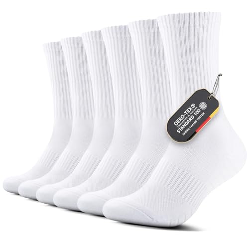 Falary Sportstrumpor vandringsstrumpor män kvinnor tennisstrumpor termiska vinterstrumpor herrstrumpor löparstrumpor 43–46 39–42 vandringsstrumpor vadderade andas bomull 6 par, 6 x vit, 43-46 EU