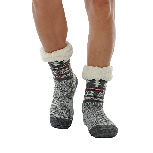 WYTartist Toffelstrumpor för män med grepp, supermjuka, varma, mysiga, luddiga, fleecefodrade, vinterstrumpor, strumpor för hemmet, Grå, en storlek
