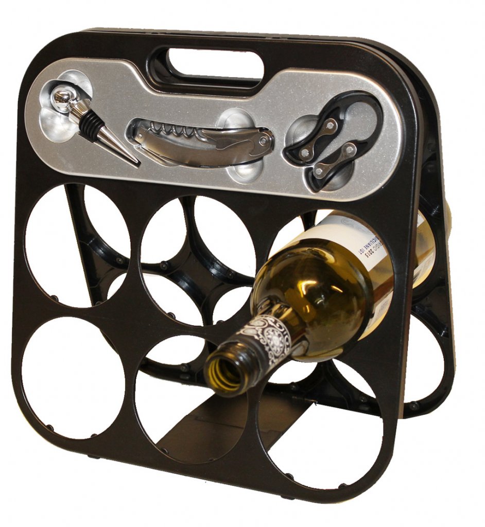 ROMINOX Presentartiklar vintillbehör // Bokblock – vintillbehör 7 delar, block med sommelierkniv, 2 droppringar, vintermometer, flasklock, pip; mått: ca 7 x 7 x 22 cm