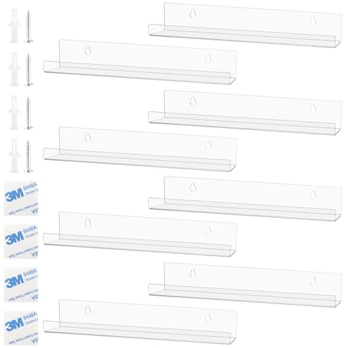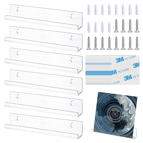 6 st vägghylla för skivor, 30,5 x 4,3 x 4,3 cm, akrylväggmonterad vinylskivhållare, transparent hylla, vägghylla i akryl för vinylskivor