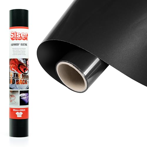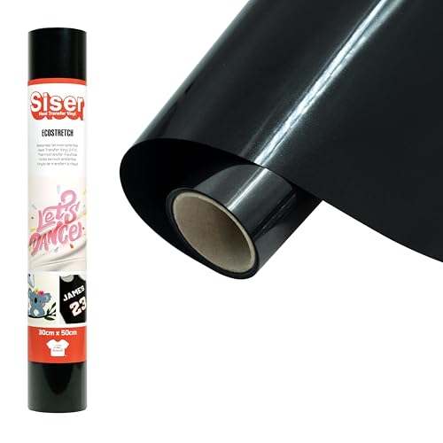 Siser EcoStretch svart 30 cm x 0,5 m (30 cm x 0,5 m) värmeöverföringsvinyl, strykbar vinyl för kläder och sportkläder för kreativa hobbyer, lätt att klippa