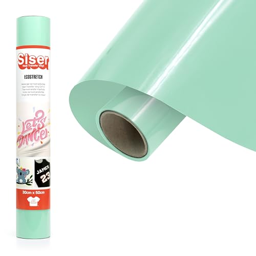 Siser EcoStretch Mint 30 cm x 0,5 m (30 cm x 0,5 m) värmeöverföringsvinyl, strykbar vinyl för kläder och sportkläder, kreativa hobbymaterial, lätt att klippa