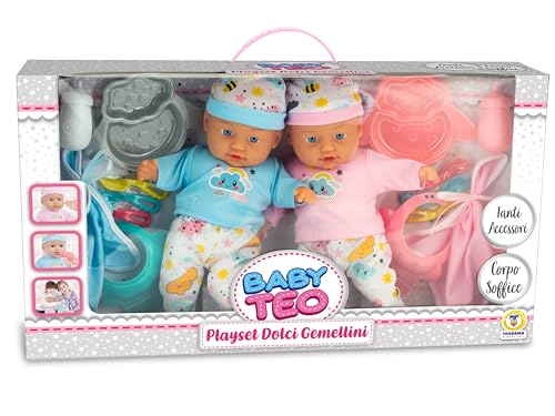 Teorema - Set med tvillingdockor, herr och dam, leksak för barn, med mjuk kropp av vinyl, koordinerade kläder och många tillbehör ingår