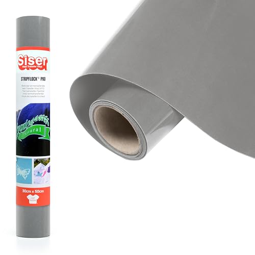 Siser® Stripflock PRO grå, 30 cm x 0,5 m, flytande värmeöverförbar vinyl för tyganpassning, kläder och tillbehör, kreativa hobbyer, lätt att klippa