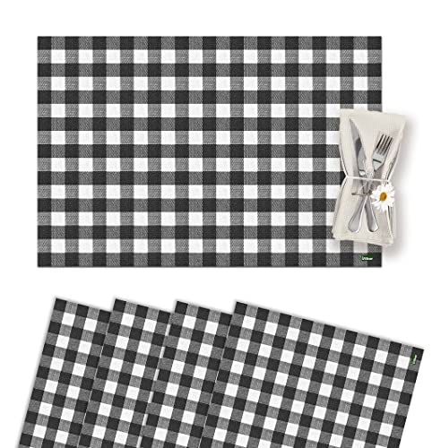 Vilber, Uppsättning av 4 individuella vinyl skyddsmedel. Tvättbara, vattentäta, Anti-Fläck, Anti-Slider, Non-Stick & Värmebeständiga. Ram. Svart Vichy