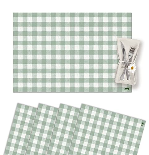 Vilber, Uppsättning av 4 individuella vinyl skyddsmedel. Tvättbara, vattentäta, Anti-Fläck, Anti-Slider, Non-Stick & Värmebeständig Ram. Vichy Grön