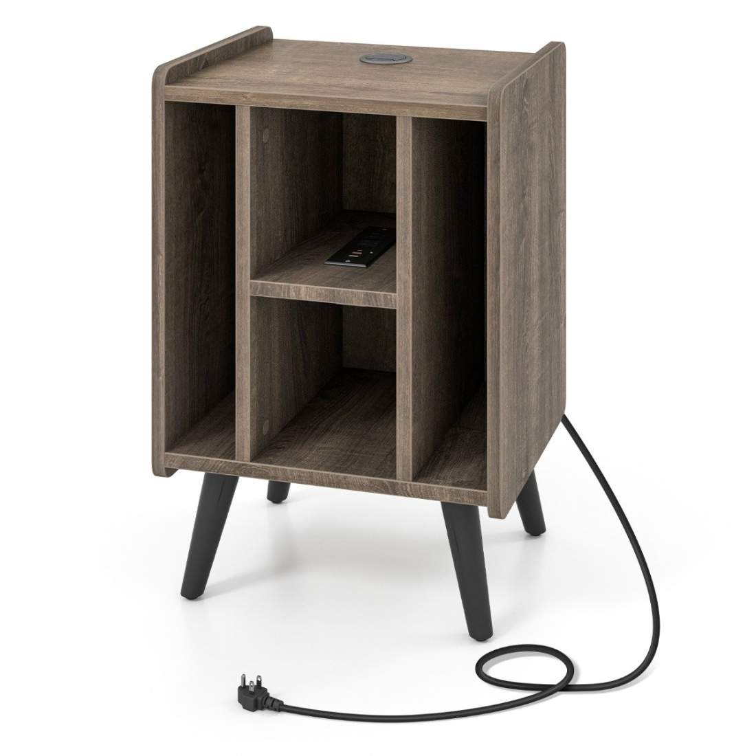 Skivbordsstativ med laddstation & 4 öppna hyllor vinylskivor skivspelare bord grå