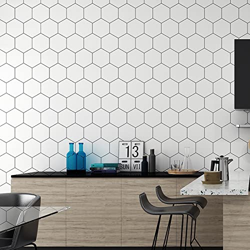 Självhäftande tillfällig tapet kök klibbig vinyl wrap tapet gränser täcker självhäftande rulle vit hexagon 60 x 500 cm (23,62 x 199,7 tum)